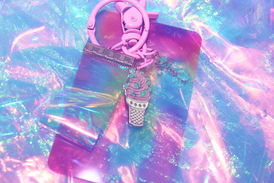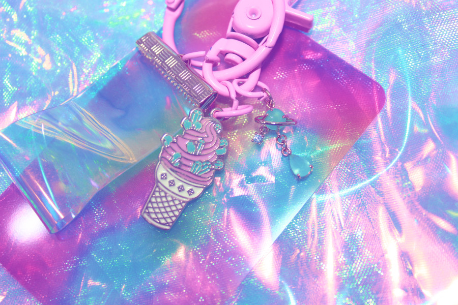 먹지마시구 가방에 양보해주세요~!!레트로 느낌이 물씬 나는 무광 파스텔톤 키링에 홀로그램 pvc 원단이 오묘한 반짝임을 더해줘요.