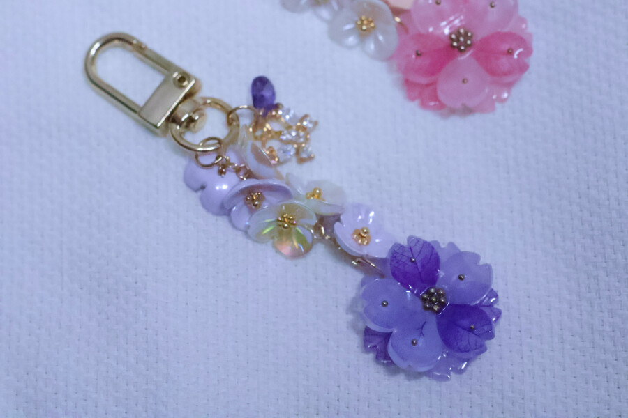 핑크 앤 퍼플 플라워 키링