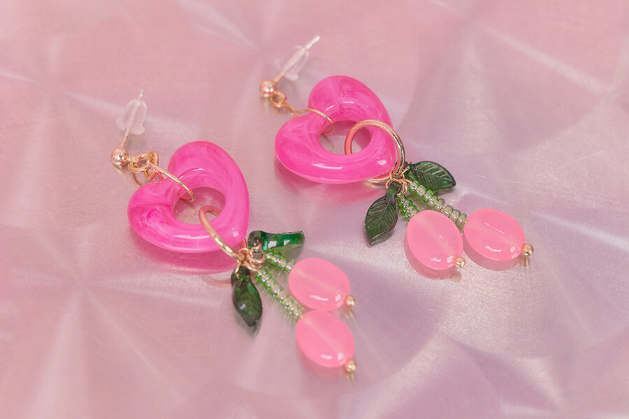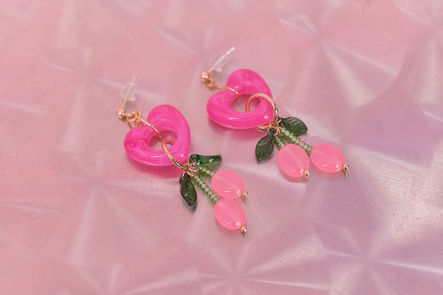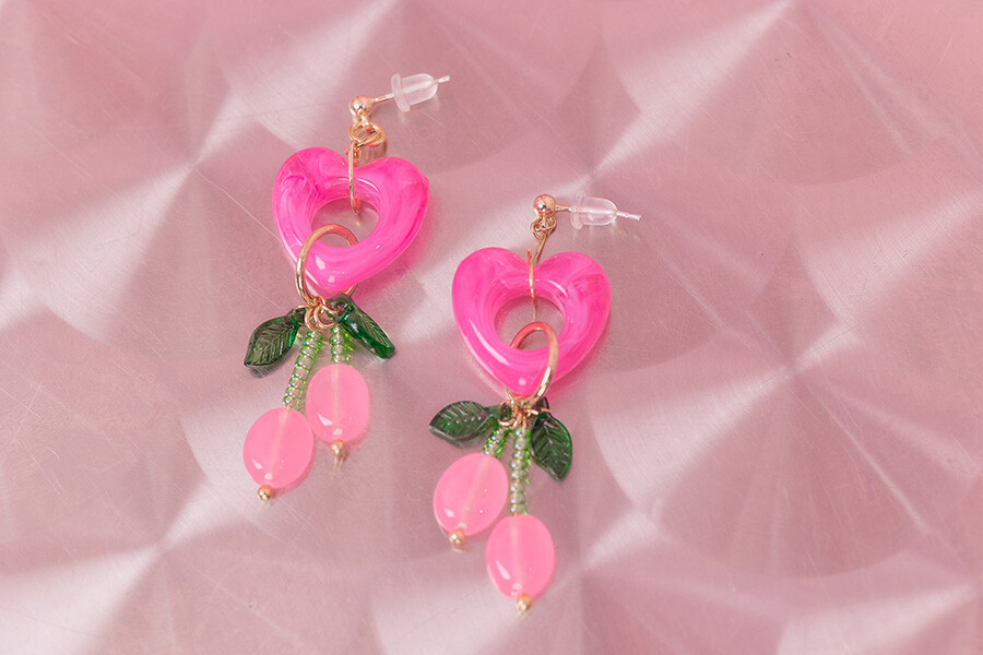 핑크 체리 귀걸이