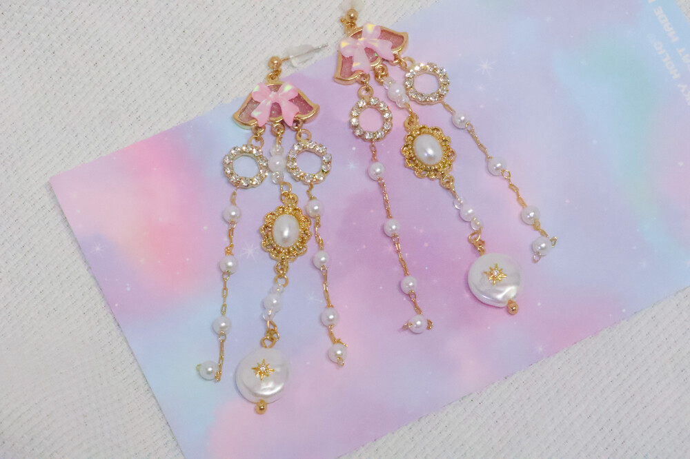 리본 핑크 해파리 귀걸이